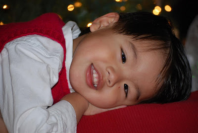 E. was the first to get in front of the camera. No bribery necessary. Just a hug from Mom was all he needed to cooperate.